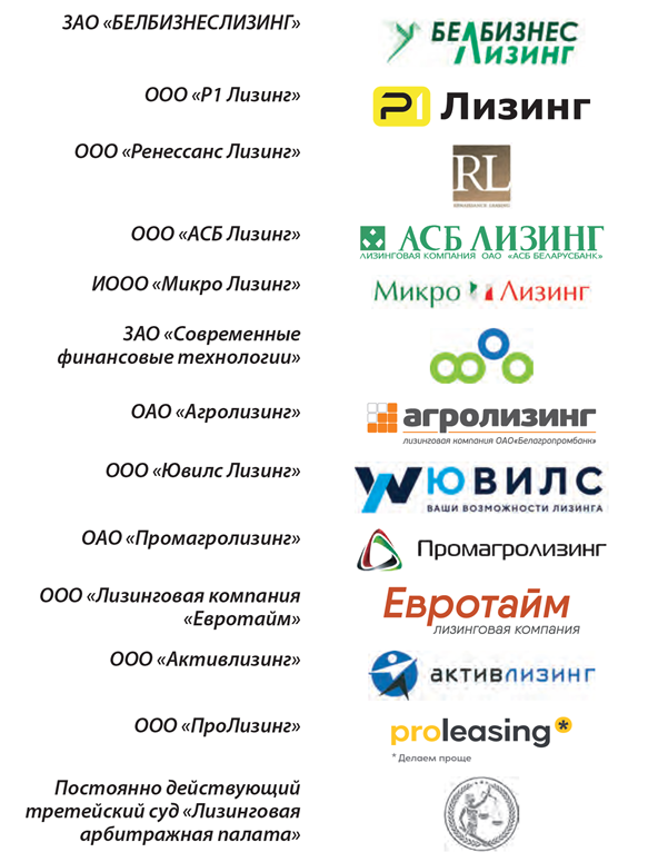 Ассоциация лизингодателей Республики Беларусь выражает глубокую благодарность Партнерам мероприятия за содействие. Оказанное в организации и проведении мероприятия:
